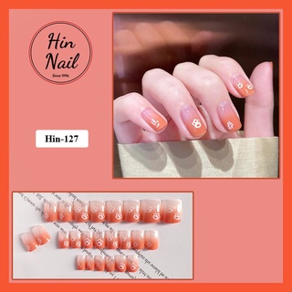 Móng tay giả Hin Nail form ngắn màu cam họa tiết bàn chân gấu