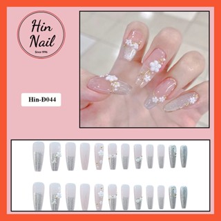 Móng tay giả đính đá Hin Nail màu hồng pastel đính hoa siêu hot