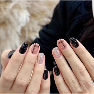 Móng Tay Giả Hin Nail form ngắn họa tiết caro ánh nhũ