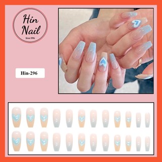 Móng tay giả Hin Nail form dài màu xanh ombre họa tiết trái tim
