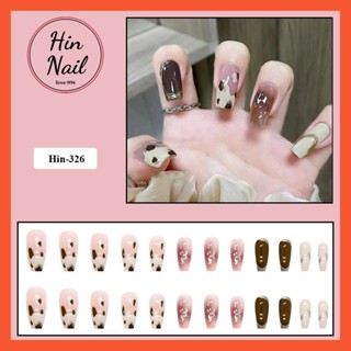 Móng tay giả Hin Nail kèm keo màu trà sữa họa tiết ánh nhũ