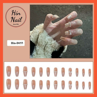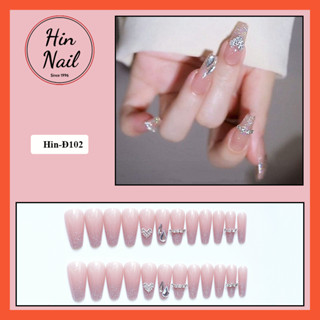 Móng tay giả Hin Nail đính đá màu hồng ánh nhũ hottrend