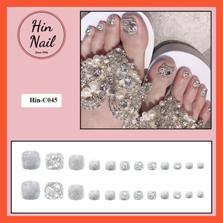 Móng Chân Giả Đính Đá Hin Nail màu trắng bạc ánh nhũ