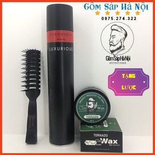COMBO Giữ Nếp Gôm Xịt Tóc Luxuryous 400ml + Sáp Vuốt Tóc Tornado Tặng Kèm Lước