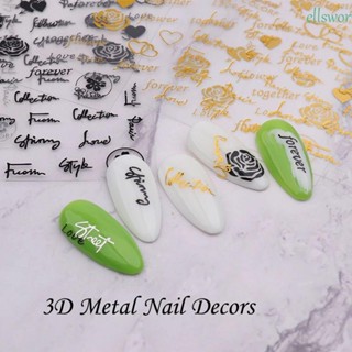 Miếng Dán Trang Trí Móng Tay In Chữ Tiếng Anh Bằng Kim Loại Dễ Thương|Đề Can Tự Dính Hình Hoa Hồng Trang Trí Móng Tay