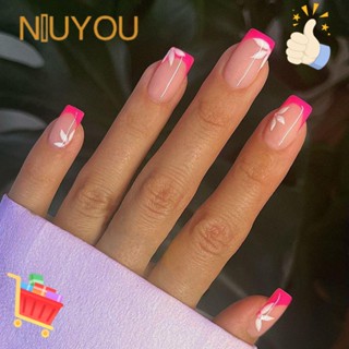 NIUYOU Bộ Móng Tay Giả Đầu Vuông Màu Hồng Thời Trang Cho Nữ