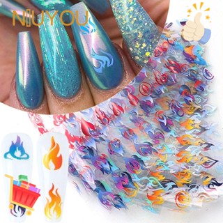 NIUYOU Miếng Dán Trang Trí Móng Tay Họa Tiết Ngọn Lửa Màu Gradient