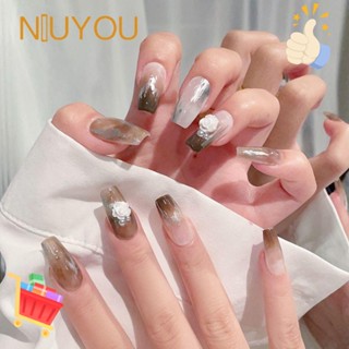 NIUYOU Bộ Móng Tay Giả Đầu Vuông Ngắn Chống Nước Che Phủ Toàn Diện Cho Nữ