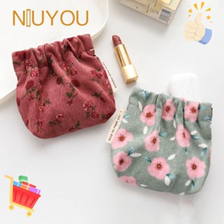 NIUYOU Túi Đựng Tiền Xu Bằng Nhung Kẻ In Họa Tiết Xinh Xắn Cho Nữ