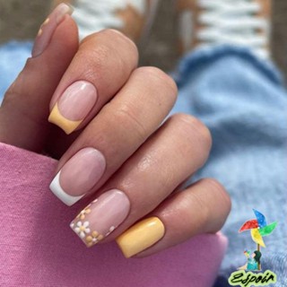 Bộ 24 Móng Tay Giả Hình Vuông / Hoa / Trái Tim / Trái Tim / Hoa Có Thể Tháo