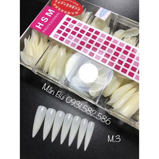 Móng úp HSM phom thang màu trong, đục, nước gạo (loại không nhám), hộp 500 móng đủ size