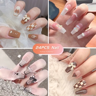 2411 YUKEHUI bộ móng tay giả set móng giả trong suốt móng tay giả đính nơ móng tay giả dài đính đá móng giả đẹp bộ móng tay giả đính đá móng tay giả đính đá ngắn bộ móng tay giả kèm keo móng giả đẹp