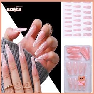 EUTUS Bộ 24 Móng Tay Giả Che Phủ Toàn Diện Họa Tiết Bươm Bướm Xinh Xắn