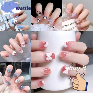 [Hàng mới về] Set 24 móng tay giả ngắn đính nơ/trái tim diy kèm keo dán