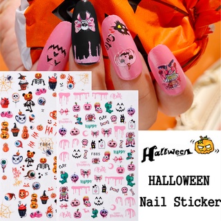 1 Tấm Sticker Dán Móng 3D Họa Tiết Halloween Chống Nước Tự Dính Hình Đầu Lâu Bí Ngô Nơ Hoạt Hình Trang Trí Móng Tay DIY