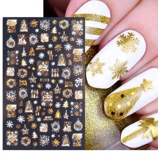 [Hàng mới về] Miếng dán trang trí móng tay nghệ thuật hình bông tuyết hình học 3D màu vàng trắng dành cho dịp Giáng Sinh