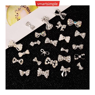 Phụ Kiện Trang Trí Móng Nghệ Thuật Hình Nơ Đính Đá Zircon Màu Bạc Lấp Lánh Thời Trang J4Y3