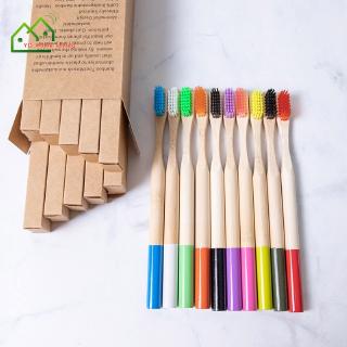 Bàn chải đánh răng màu cầu vồng dễ thương tay cầm bằng tre tự nhiên