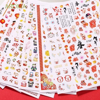 [Hàng mới về] Nhãn dán móng tay hình mèo may mắn phong cách Trung Hoa thời trang cho năm mới