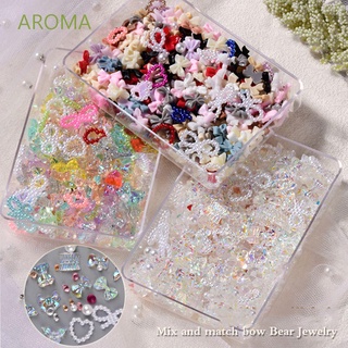 [Hàng mới về] Phụ kiện trang trí móng tay nhiều màu sắc hình gấu và nơ 3d dễ thương DIY