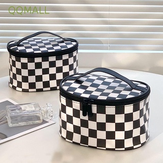 [Hàng mới về] Túi da PU in sọc caro có khóa kéo đựng đồ trang điểm đa năng đơn giản phong cách Hàn Quốc