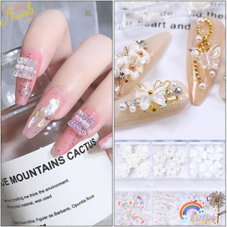 Hộp 60 Phụ Kiện Trang Trí Móng Tay Nghệ Thuật Hình Hoa / Nơ / Gấu Trắng Lấp Lánh Xinh Xắn