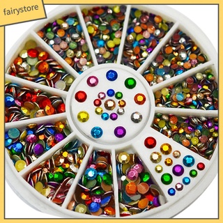 Hộp đá trang trí móng tay hình tròn 12 màu 500 hạt