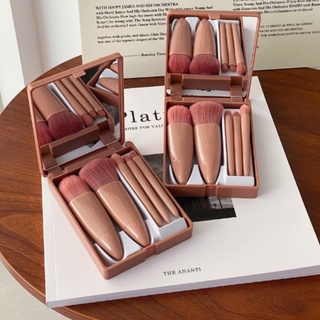 Hộp 5 cọ trang điểm tông hồng phấn mini kèm gương cao cấp BAG U HOP5CO