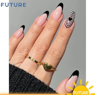 FUTURE 24pcs/Box Women Fashion Wearable Detachable Nail Tips Almond False Nails Artificial Manicure Tool Press On Nails Full Cover French Fake Nails