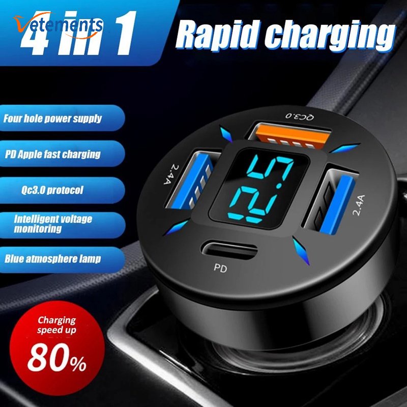 【Ba Kiểu để lựa chọn】 Đầu vào: 12-24V Qc và 3 USB: Đầu ra: 4 USB Usb1 (cam-QC): 5V / 3A, 9V / 2A, 12V / 1.5A (18w) Usb2 (xanh lam): DC5.0V / 2.4 (12w) Usb3 (xanh lam): DC5.0V / 2.4 (12w) Usb4 (xanh lam): DC5.0V / 2.4 (12w) Siêu sạc -3 USB: Đầu ra: 4 USB Usb1 (xanh lá cây-Siêu): DC5V / 3.6A, 9V / 2.5A, 12V / 2A, 10V / 4A, 11V / 6A (66w) Usb2 (xanh lam): DC5.0V / 3.1A (15w) Usb3 (xanh lam): DC5.0V / 3.1A (15w) Usb4 (cam): DC5.0V / 3.1A (15w) Pd và 3 USB: Đầu ra: PD + 3 USB Pd (đen): 5V / 3A, 9V / 2,25A, 12V / 1,67A (20w) Usb2 (xanh lá cây - QC): 5V / 3A, 9V / 2A, 12V / 1.5A (18w) Usb3 (xanh lam): DC5.0V / 2.4 (12w) Usb4 (xanh lam): DC5.0V / 2.4 (12w) Đặc điểm sản phẩm: 1. Điện áp pin xe với màn hình LED 2. 4 giao diện USB cung cấp nguồn điện cùng một lúc 3. Tích hợp chip quản lý, shunting thông minh và sạc nhanh mà không làm hỏng máy 4. Nó được làm bằng vật liệu hợp kim nhôm và thiết kế hợp lý của vỏ bằng 18 quy trình như gia công CNC, đánh bóng, phun cát, oxy hóa và khắc radium 5. Chip điều khiển tổng thể hiệu suất cao bảo vệ mạch 5 lớp được sử dụng để chia sẻ an toàn hơn, 6. Thiết kế tiếp xúc đàn hồi bằng kim loại, thích hợp cho bật lửa có kích thước khác nhau, có thể mang theo đầu vào điện áp rộng 12V / 24V, tương thích với hầu hết các mẫu trên thị trường 7. Nó tương thích với kết hợp rộng, điện thoại di động thông minh, Bluetooth và máy tính bảng, và có thể đáp ứng yêu cầu sạc của cả trình điều khiển và hành khách Thông số kỹ thuật sản phẩm: Thể loại: Bộ sạc di động trên ô tô Vật liệu nhà ở: PC Tổng sản lượng: 30W (MAX) Kích thước: đường kính trên: 3,85cm; Đường kính đáy: 2cm; Chiều dài: 6cm; Số lượng: 1 Gói chứa: 1 * Bộ sạc di động trên ô tô