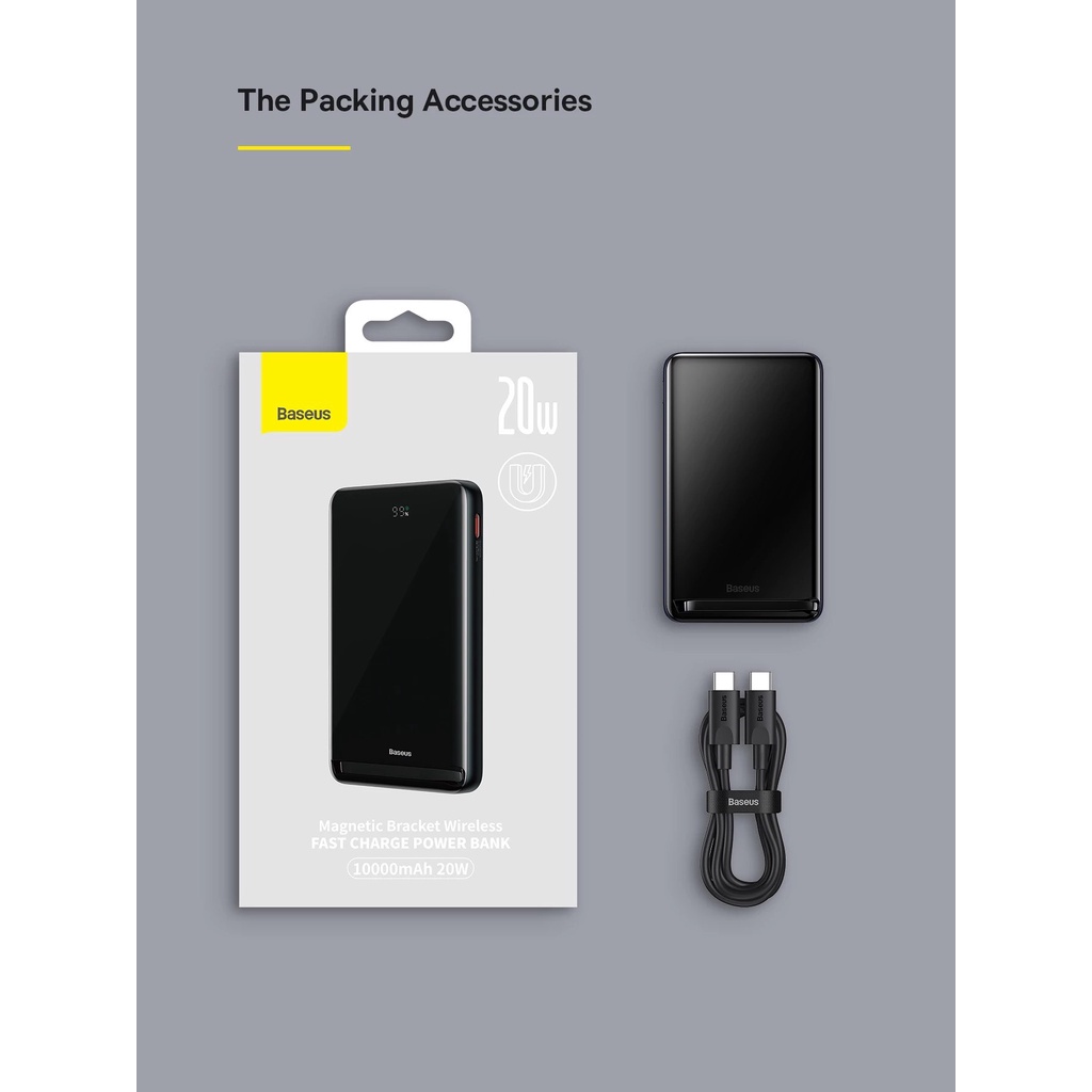 Điện Thoại & Phụ Kiện > Pin Dự Phòng > 5.000 - 10.000 mAh > Sạc dự phòng không dây Baseus Magnetic Bracket Wireless Fast Charge Power Bank dung lượng 10000mAh PD20W nhẹ và nhỏ gọn