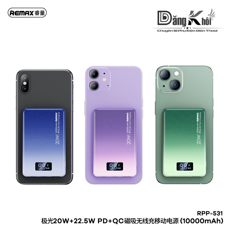 Giới thiệu Sạc Dự Phòng Không Dây REMAX RPP-531 Aurora 20W + 22.5W PD + QC 10000mAh