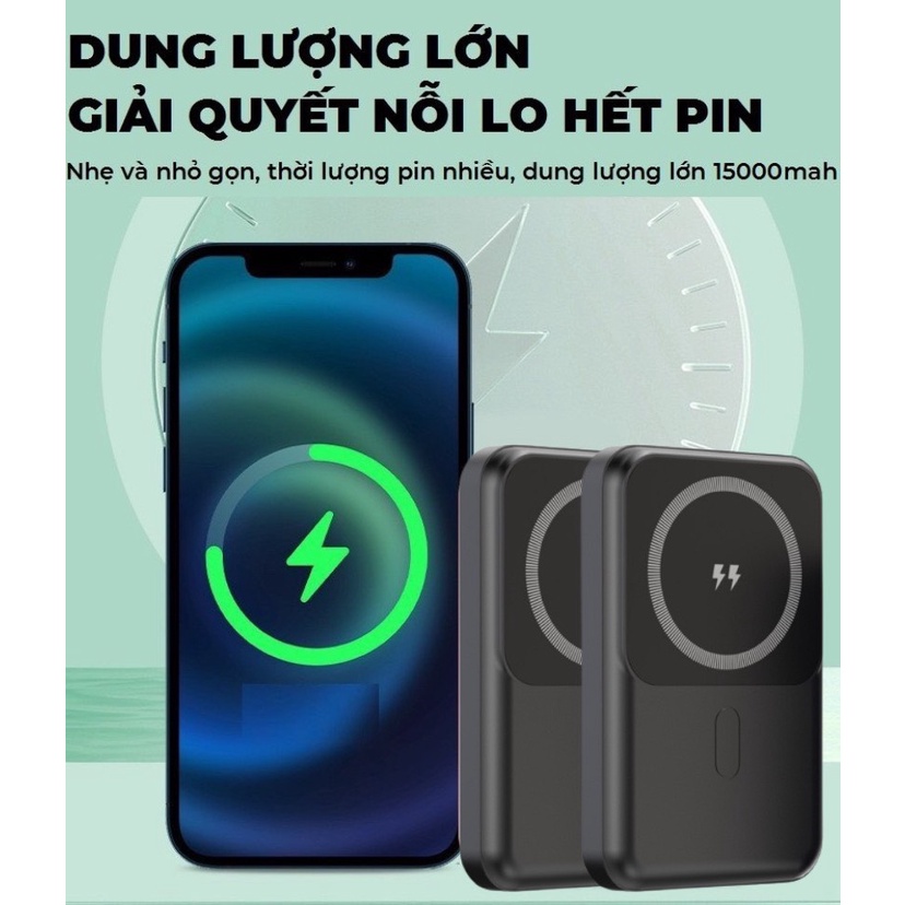 Điện Thoại & Phụ Kiện > Pin Dự Phòng > 10.001 - 20.000 mAh > Sạc dự phòng không dây sạc nhanh 22,5W pin 15000mah mini nhỏ gọn cao cấp cho từ ip 8/X/11/12/13 – NATUSO GT68