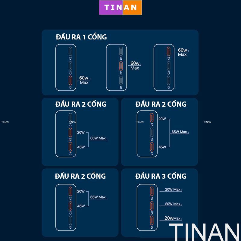 - C1 / C2 / C3 đầu ra: (5V3A / 9V3A / 12V3A/15V3A/20V3A) Đầu ra C1+C2: (C1/45W+C2/20W) Đầu ra C1+C3: (C1/45W+C3/20W) Đầu ra C2+C3: (C2/45W+C3/20W) Đầu ra C1+C2+C3: (C1/20W+C2/20W+C3/20W)