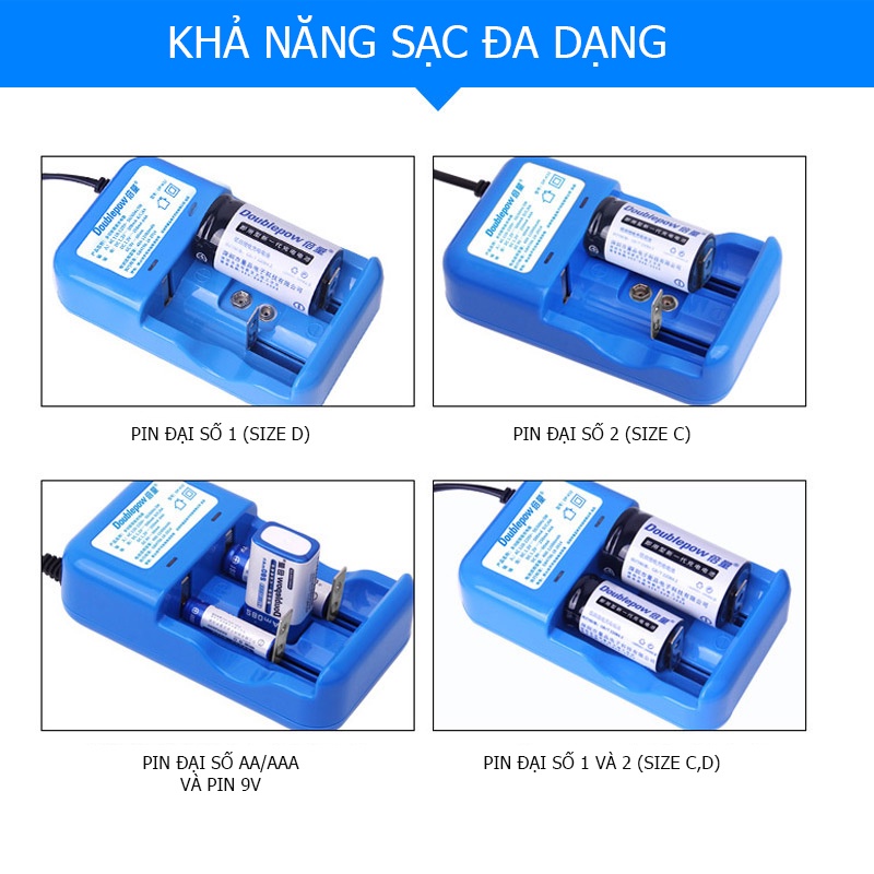 Dụng cụ và thiết bị tiện ích > Thiết bị và phụ kiện xây dựng > Pin > Bộ sạc pin AA AAA C D 9V thông minh Doublepow K32, Bộ sạc tự ngắt và báo đèn khi pin đầy
