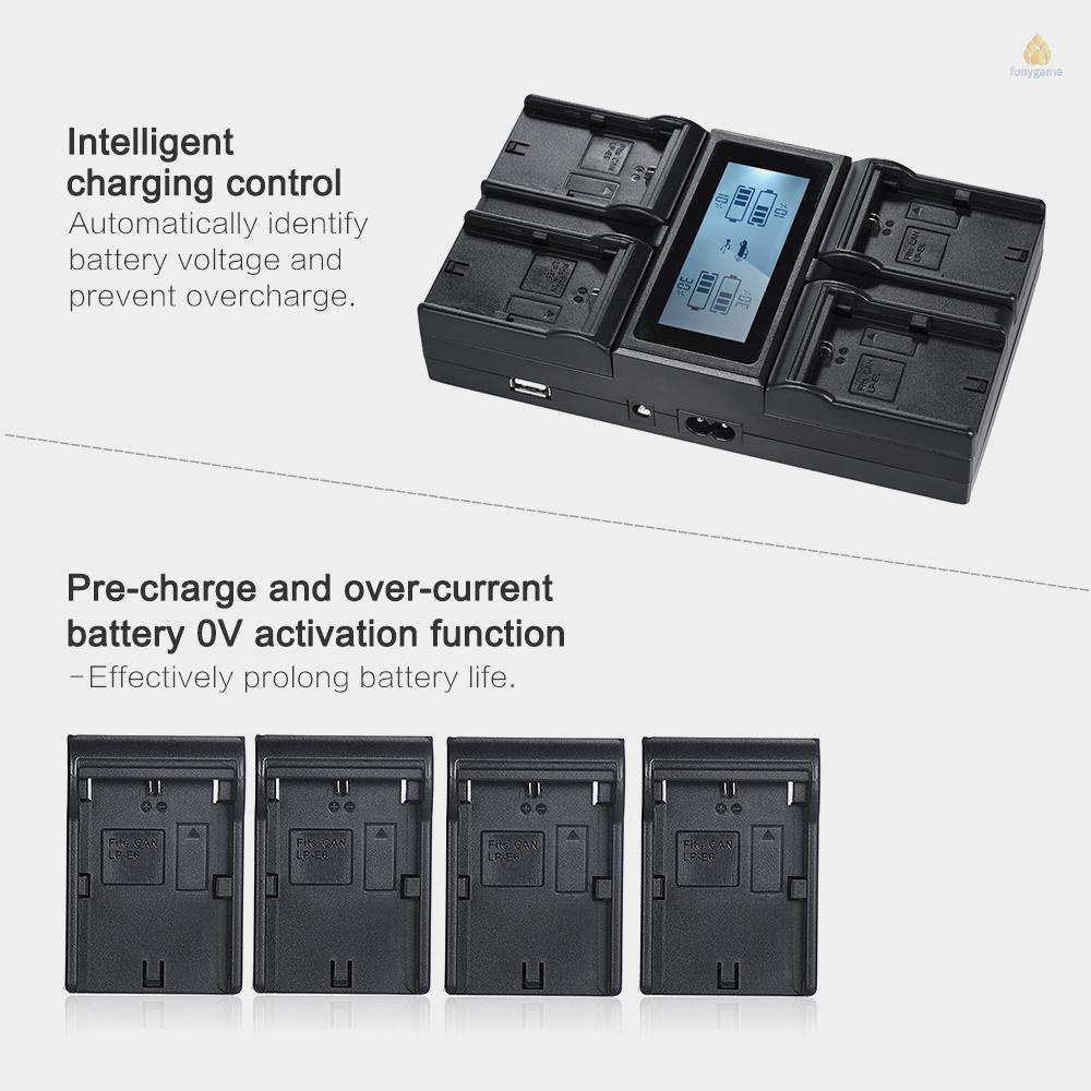 Máy Ảnh & Máy Quay Phim > Phụ kiện máy ảnh > Pin - Sạc máy ảnh > Bộ Sạc Pin Máy Ảnh Kỹ Thuật Số Andoer LP-E6 LP-E6N 4 Kênh Cho EOS 5DII 5DII 5DS 5DSR 6D 7DII 60D 80D 70D Kèm Sạc DC