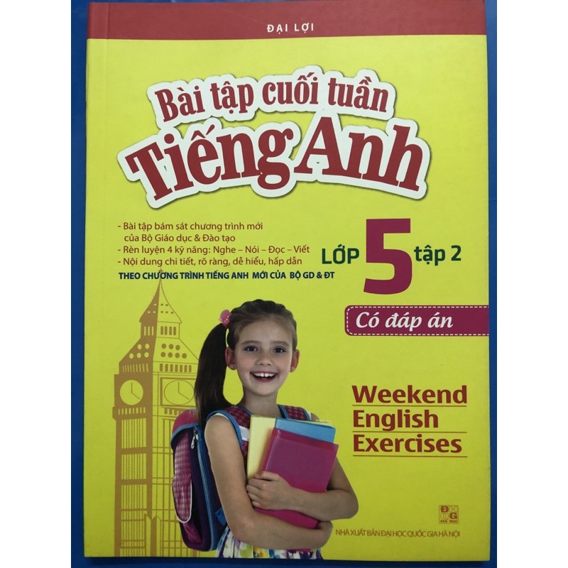 Giới thiệu sách Cuốn sách bài tập cuối tuần tiếng anh lớp 5 được ra đời với bao công sức của các tác giả, các giáo viên giàu kinh nghiệm giảng dạy Tiếng Anh. Cuốn sách được chia theo các đơn vị bài học và bám sát chương trình học tập trên lớp của các em. Đây là một tài liệu bổ ích giúp các em ôn tập, cũng cố và nâng cao vốn tiếng anh của mình. Trong mỗi đơn vị bài học, chúng tôi đều trình bày đầy đủ các nội dung sau: - Phần lý thuyết: Tập trung vào trọng tâm ngữ pháp của bài học - Phần Week 1: Tập trung vào việc thực hành kiến thức ngôn ngữ của các em. Các em sẽ được rèn luyện ngữ âm từ vựng và ngữ pháp mẫu câu. - Phần Week 2: Phần này giúp rèn luyện và hoàn thiện cả 4 kỹ năng giao tiếp: Nghe - Nói - Đọc - Viết tiếng Anh của các em. Kết hợp với nội dung trong sách là link tải đĩa CD (đính kèm trên bìa sách) phát âm chuẩn tiếng Anh của người bản ngữ. Các em có thể sử dụng điện thoại smartphone để quét mã QR và tải các bài học một cách nhanh chóng và thuận tiện. Chúng tôi tin rằng bộ sách sẽ giúp các em học sinh nâng cao kiến thức và là nguồn tài liệu tham khảo đáng tin cậy cho thầy cô giáo và các vị phụ huynh trong quá trình giúp các em yêu thích môn học này.