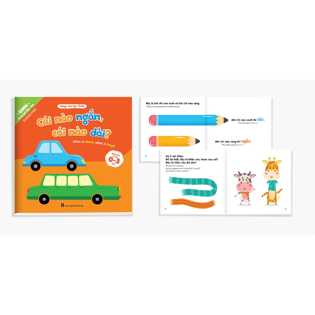 📖 GIỚI THIỆU SÁCH 📖 + Bộ Ehon toán học sẽ giúp cho trẻ nhận biết những khái niệm toán học cơ bản đầu tiên như: to nhỏ, dài ngắn, cao thấp, trái phải, trước sau, trên dưới, ít nhiều, tập đếm Học toán sớm giúp trẻ phát triển trí não, đồng thời phát triển khả năng suy luận, tư duy logic, tự giải quyết vấn đề. Giúp trẻ tiếp cận thế giới xung quanh một cách nhanh chóng, nhạy bén hơn. + Bộ Ehon - Cùng con học toán (song ngữ Việt Anh) - Toán học đầu đời cho bé từ 0 - 3 tuổi (Bộ 8 cuốn) Trọn bộ gồm 8 quyển: - Bạn nào to, bạn nào nhỏ? - Bạn nào cao, bạn nào thấp? - Ai ở phía trên, ai ở phía dưới? - Ai ở phía trước, ai ở phía sau? - Cái gì bên phải, cái gì bên trái? - Cái nào ngắn, cái nào dài? - Đếm xem có bao nhiêu? - Cái nào có ít, cái nào có nhiều?