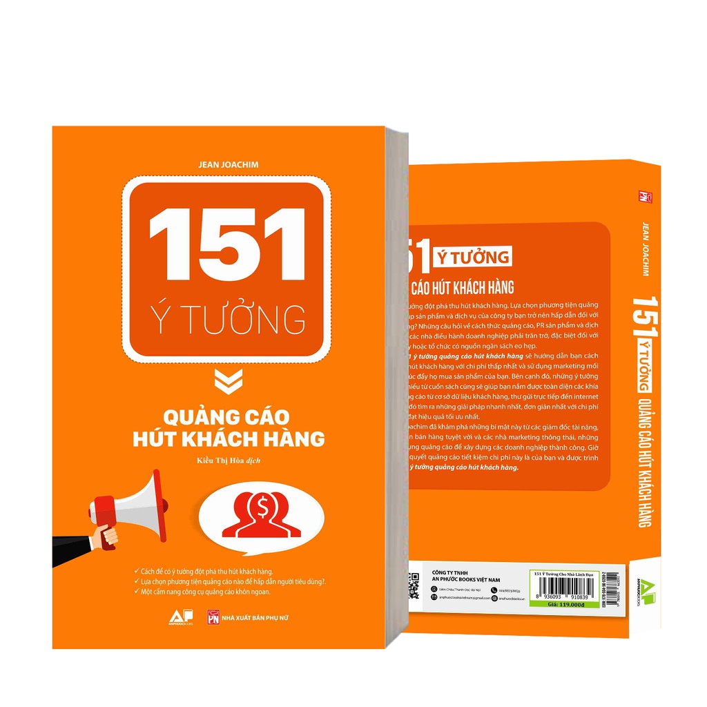 4.151 Ý Tưởng Quảng Cáo Hút Khách Hàng Thành Công Một trong những cách giúp bạn bán được sản phẩm của mình đó chính là chạy quảng cáo, thu hút khách hàng. Quảng cáo là hình thức tác động cần thiết để doanh nghiệp của bạn đi sâu vào tâm trí của khách hàng, không quảng cáo bạn sẽ rất khó khăn trong việc tiếp cận khách hàng của mình cũng như cạnh tranh với các đối thủ khác. Nhưng không phải ai cũng biết cách để tạo ra những chiến dịch quảng cáo tốt và hiệu quả. ------------------------------------ Công ty phát hành: An Phước Books Việt Nam Nhà xuất bản: NXB Phụ Nữ Tác giả: Nhiều tác giả Loại bìa: Bìa mềm Số trang: 280 Kích Thước: 13 x 20,5 Năm xuất bản: 2020 ..........................................................................
