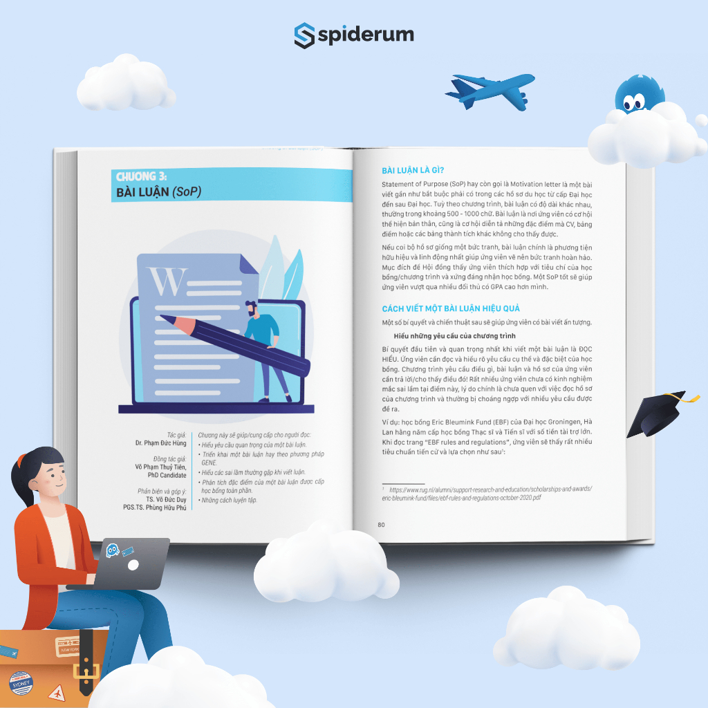 Cuốn sách "Bước ra thế giới: Cẩm nang du học và săn học bổng" Là cẩm nang toàn diện và đầy đủ nhất do Spiderum phát hành và được biên tập bởi chủ biên TS. Phạm Đức Hùng; cuốn sách sẽ cung cấp cho bạn đầy đủ kĩ năng, kiến thức để sẵn sàng đi những bước đầu tiên trên hành trình du học và đạt được nhiều học bổng danh giá.