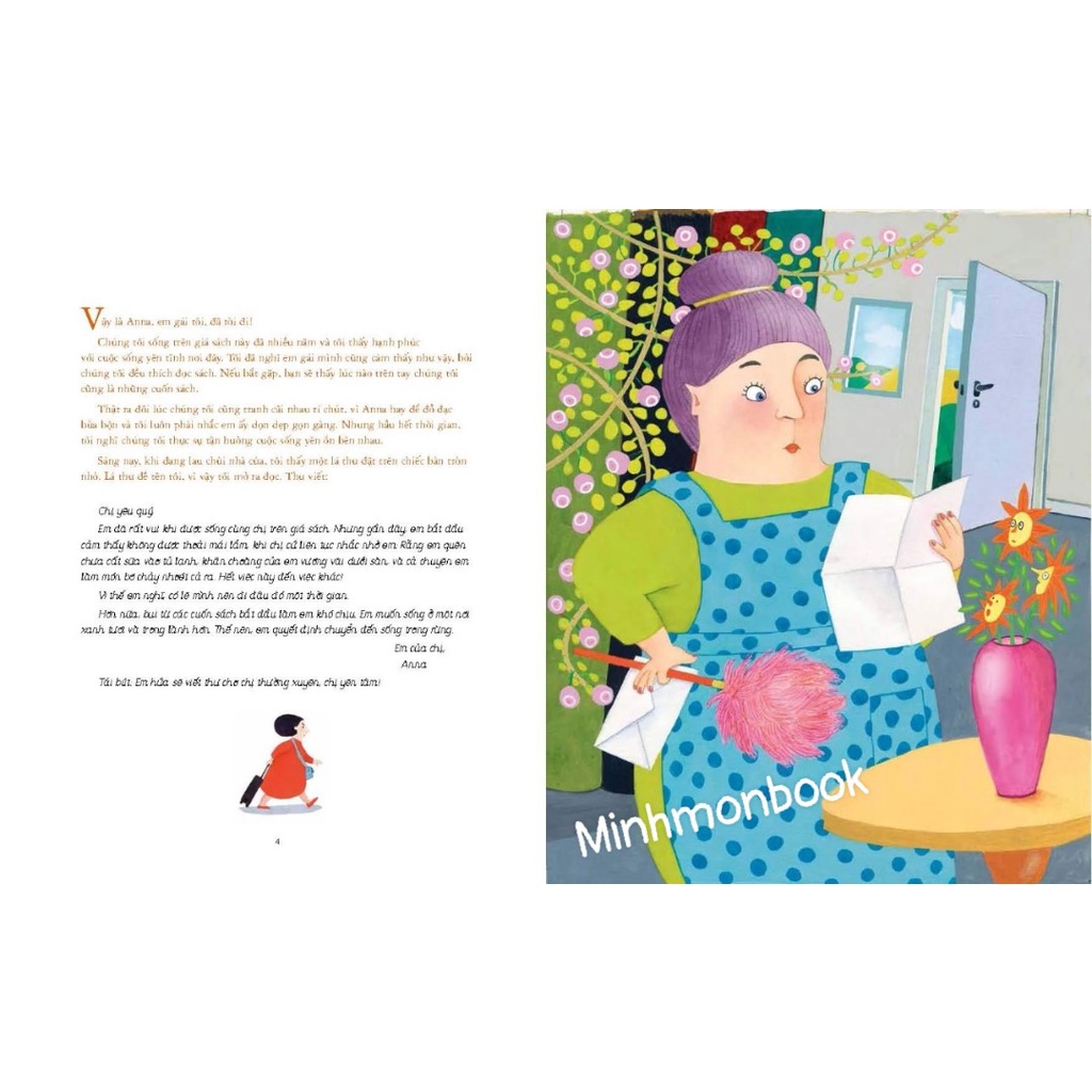 Sau khi đã sống quá lâu cùng chị gái trên giá sách, Anna muốn làm một điều gì đó khác đi. Cô quyết định lên đường phám phá thế giới bên ngoài. Và thế là chuyến phiêu lưu đầy thú vị và bất ngờ của cô bắt đầu. Trong suốt hành trình, Anna đã viết thư về cho chị gái mình, kể cho chị nghe về những nơi chốn, những nhân vật vô cùng đặc biệt và quen thuộc. Bạn có đoán ra đấy là những ai không? Và cuộc hành trình của Anna sẽ kết thúc thế nào? Mời các bạn cùng đọc sách để tìm được câu trả lời nhé! Tác giả - Hoạ sĩ Tove Krebs Lange đã có 10 năm gắn bó với Dự án Hỗ trợ Văn học thiếu nhi Việt Nam - Đan Mạch (2006 – 2015) với vai trò là thành viên ban giám khảo các cuộc vận động sáng tác, chuyên gia hướng dẫn kĩ năng sáng tác cho các nhà văn, hoạ sĩ Việt Nam. Cô là họa sĩ minh họa của hơn 200 cuốn sách tranh tại Đan Mạch và hiện là Chủ tịch Hội Họa sĩ minh họa Đan Mạch