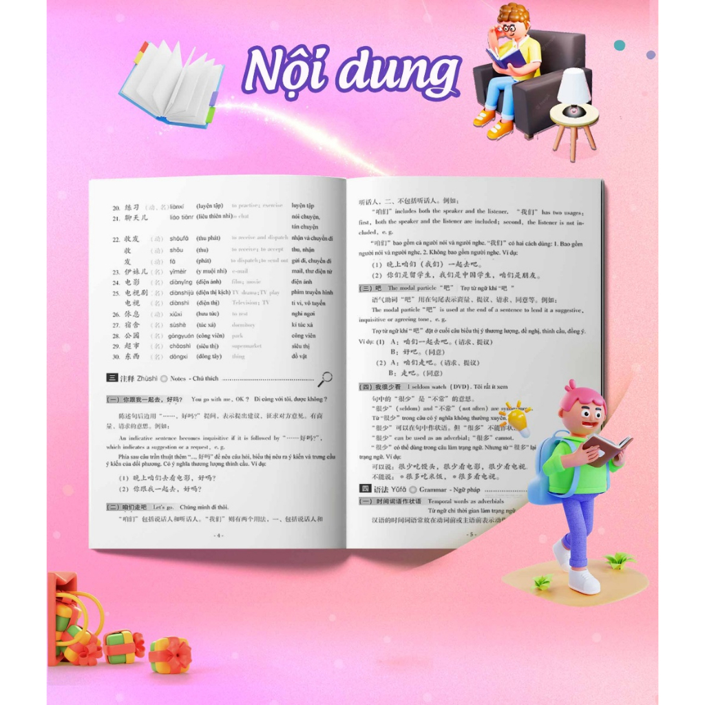 - Cuốn “Giáo Trình Hán Ngữ 5 Tập 3 Quyển Thượng Bổ Sung Bài Tập - Đáp Án” cung cấp 15 bài học chủ điểm giúp người học làm quen với cách sử dụng tiếng Trung trong cuộc sống hàng ngày, tạo nền tảng cho học viên học giao tiếp đơn thuần hoặc ôn tập để thi các chứng chỉ tiếng Trung.