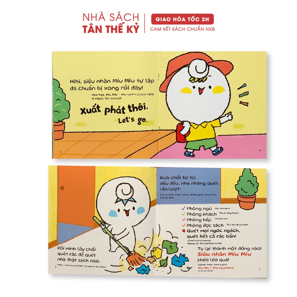- Bộ 8 quyển gồm: 1. SONG NGỮ Miu Miu Tự Lập - Dọn nhà 2. SONG NGỮ Miu Miu Tự Lập - Rửa tay 3. SONG NGỮ Miu Miu Tự Lập - Tập xe đạp 4. SONG NGỮ Miu Miu Tự Lập - Học làm bếp 5. SONG NGỮ Miu Miu Tự Lập - Đi siêu thị 6. SONG NGỮ Miu Miu Tự Lập - Đi học 7. SONG NGỮ Miu Miu Tự Lập - Có em 8. SONG NGỮ Miu Miu Tự Lập - Trông em