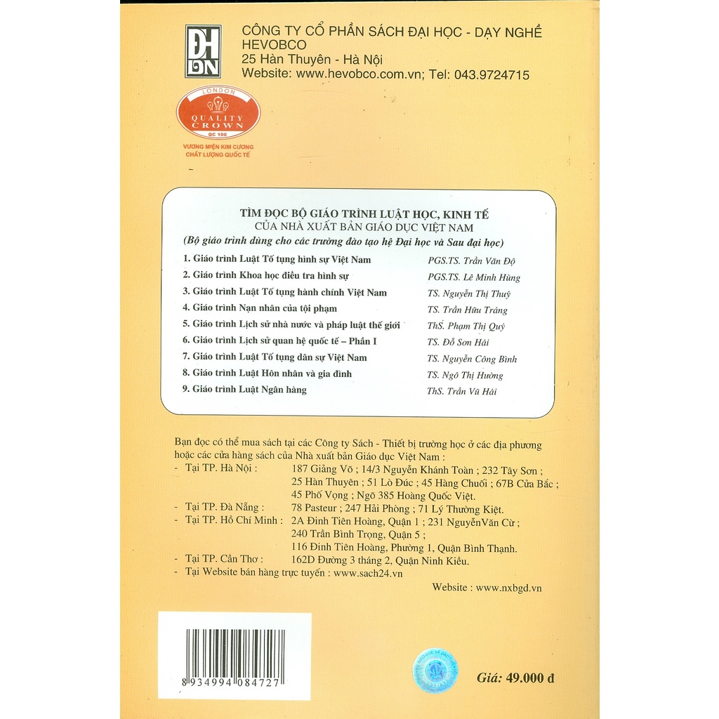 Nội dung : Cung cấp cho người đọc những kiến thức cơ bản về các vấn đề pháp luật ngân sách nhà nước cũng như pháp luật thuế trong hệ thống tài chính công. Sách thuộc Nhà Xuất Bản Giáo Dục Đơn Vị phát hành : Công ty Cổ Phần Sách Đại Học Dạy Nghề - Hevobooks
