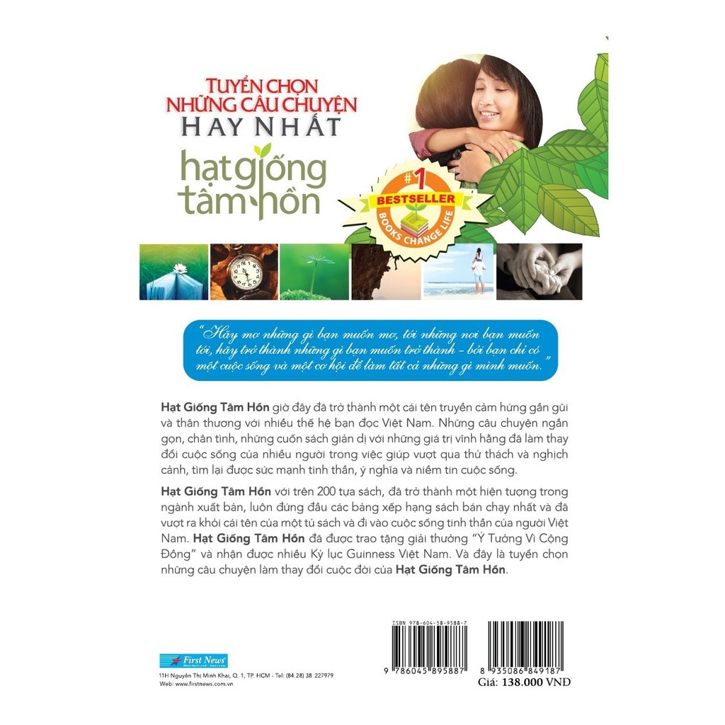 Sau 15 năm liên tục ra mắt bạn đọc, Tủ sách Hạt Giống Tâm Hồn đã trở thành thương hiệu của First News, đồng thời cũng là hiện tượng trong ngành xuất bản của Việt Nam. Hiếm có một tủ sách nào tồn tại trong thời gian lâu như vậy và cho đến nay, Hạt Giống Tâm Hồn vẫn luôn là tủ sách được bạn đọc nhiều lứa tuổi đón nhận nồng nhiệt. Để đáp lại tình cảm mà bạn đọc dành cho tủ sách trong những năm qua, First News quyết định thực hiện cuốn sách Tuyển chọn Hạt Giống Tâm Hồn hay nhất, giống như là một món quà tri ân tới bạn đọc.