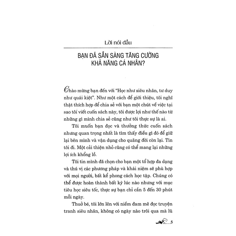 Học như siêu nhân Một cuốn sách Học như siêu nhân tư duy quái kiệt hướng dẫn dễ hiểu nhằm tăng cường khả năng học với sức mạnh của phương pháp Học Siêu tốc, giúp bạn sở hữu các phong cách học nhanh hơn, nhớ lâu hơn trong khi có nhiều niềm vui hơn. Tư duy như quái kiệt Bạn đã bao giờ muốn có 1.000 kg ý tưởng chưa? Với sức mạnh của Tư duy sáng tạo, không chỉ vô số cơ hội mở ra mà toàn thể Vũ trụ cũng mở ra cho bạn. Với hơn 20 phương pháp sáng tạo, văn phong hài hước và súc tích, Học như siêu nhân, tư duy như quái kiệt sẽ hướng dẫn bạn khai phá tiềm năng của mình thông qua rèn luyện tư duy,nhà sách online rèn luyện trí nhớ, rèn cách đọc hiệu quả, học từ thiên nhiên, khám phá lập trình ngôn ngữ tư duy (NLP)… Để có bộ não của thế kỷ XXI, hãy làm theo những hướng dẫn này. THÔNG TIN CHI TIẾT