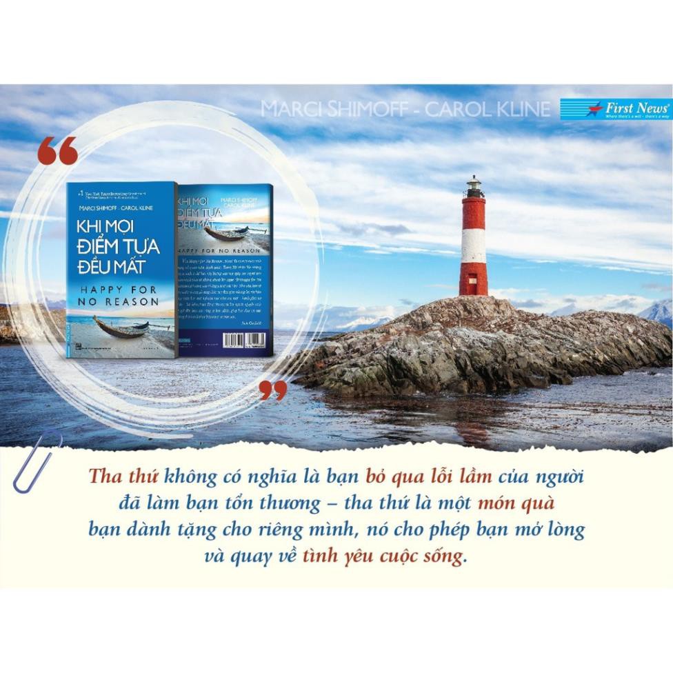 Công ty phát hành: First News Tác Giả: Nhiều tác giả Ngày phát hành: 2020 Số trang: 280 Kích thước: 13 x 20.5 cm NXB: NXB Tổng hợp TP.HCM Giá bìa: 88.000VND Mô tả sản phẩm: Với Happy for No Reason – Khi mọi điểm tựa đều mất, tác giả Marci Shimoff đã có một cuộc cách mạng về quan niệm hạnh phúc. Trong khi phần lớn những quyển sách ở thể loại này hướng vào việc giúp con người tìm kiếm hạnh phúc từ những yếu tố bên ngoài thì Happy for No Reason lại hướng vào những yếu tố nội tâm. Nhờ vậy, bạn sẽ tìm thấy những phương thức tuy đơn giản nhưng lại rất hữu hiệu giúp bạn trải nghiệm một cảm xúc mới – hạnh phúc tự thân – bất kể mọi tác động tiêu cực từ bên ngoài. Quyển sách sẽ gửi đến bạn nền tảng cơ bản nhất, giúp bạn duy trì một trạng thái hạnh phúc bền vững và trọn vẹn.