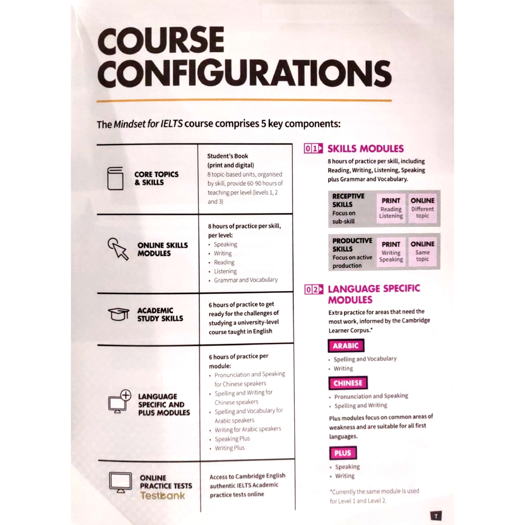 Mindset For IELTS Level 3 Student's Book With Testbank And Online Modules Have confidence in Cambridge, the writers of the IELTS test Mindset immerses you in a wide range of IELTS topics and guides you clearly through all the skills and strategies you need to prepare fully for test day: - Learning strategies improve your language skills in a structured IELTS context - Skill practice: Immerse yourself in a wide range of IELTS topics - Exam practice: Familiarise yourself with the IELTS test through authentic tasks. Achieve your goal with MINDSET for IELTS This Student's Books includes an access code for Testbank, Online Skills Modules, Academic Study Skills and Language Modules.