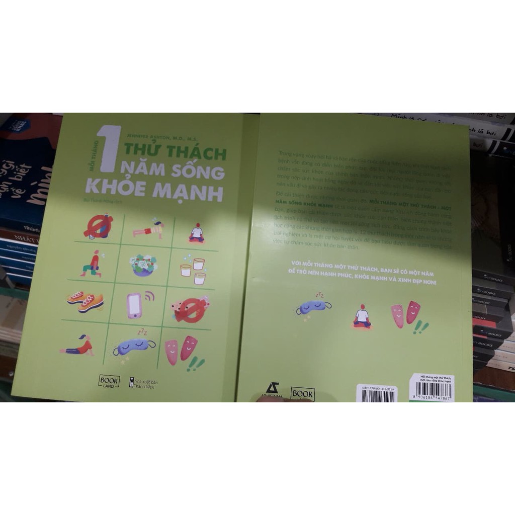 THÔNG TIN XUẤT BẢN Tên tác phẩm: Mỗi tháng 1 thử thách, 1 năm sống khỏe mạnh Tên tác giả: Jennifer Ashton, M.D., M.S. Dịch giả: Bùi Thanh Hằng nhà phát hành : Bookland - Az Việt Nam Số trang: 320 trang Nhà xuất bản: nxb Thanh Niên Giá: 111.000đồng Ngày phát hành: 30/11/2020 Sách được in bằng giấy BB70. Giới thiệu nội dung: Trong vòng xoay hối hả và bận rộn của cuộc sống hiện nay, khi tình hình dịch bệnh vẫn đang có diễn biến phức tạp, đôi lúc mọi người lãng quên đi việc chăm sóc sức khỏe của chính bản thân mình. Những thói quen không tốt trong nếp sinh hoạt hằng ngày đó sẽ dẫn tới việc sức khỏe của bạn dần trở nên xấu đi và gây ra nhiều tác động tiêu cực đến cuộc sống của bạn.