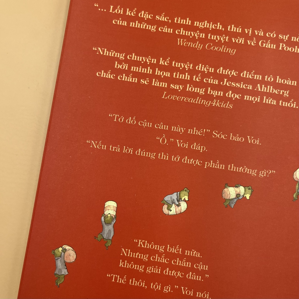 GIỚI THIỆU SÁCH Tới dự tiệc sinh nhật Bướm. Gấu có chuyến ngao du bất ngờ cùng cái bánh kem beiest bay. Đom Đóm nhận được bức thư toàn kí tự bí ẩn của Ngài, hẹn cùng đàm đạo về hoàng hôn và đêm đen. Sóc ngã xuống hẻm vực, gặp gỡ và dạy Sên Trần một “câu thần chú”. Những câu chuyện tuyệt diệu được điểm tô hoàn hảo bởi minh họa tinh tế của Jessica Ahlberg chắc chắn sẽ làm say lòng bạn đọc mọi lứa tuổi. “Lối kể chuyện khác thường, sâu lắng cùng cách tiếp cận nhẹ nhàng của Toon Tellegen mê hoặc bất cứ ai từng đọc những mẩu ngụ ngôn nên thơ này.” Tạp chí The Bookseller Sách phù hợp với lứa tuổi nhi đồng (6-11 tuổi) THÔNG TIN SÁCH Nhà xuất bản: Kim Đồng Năm xuất bản: 2020 Công ty phát hành: NXB Kim Đồng Số trang: 156 Khuôn Khổ: 13 x19 cm Trọng lượng: 175 gram